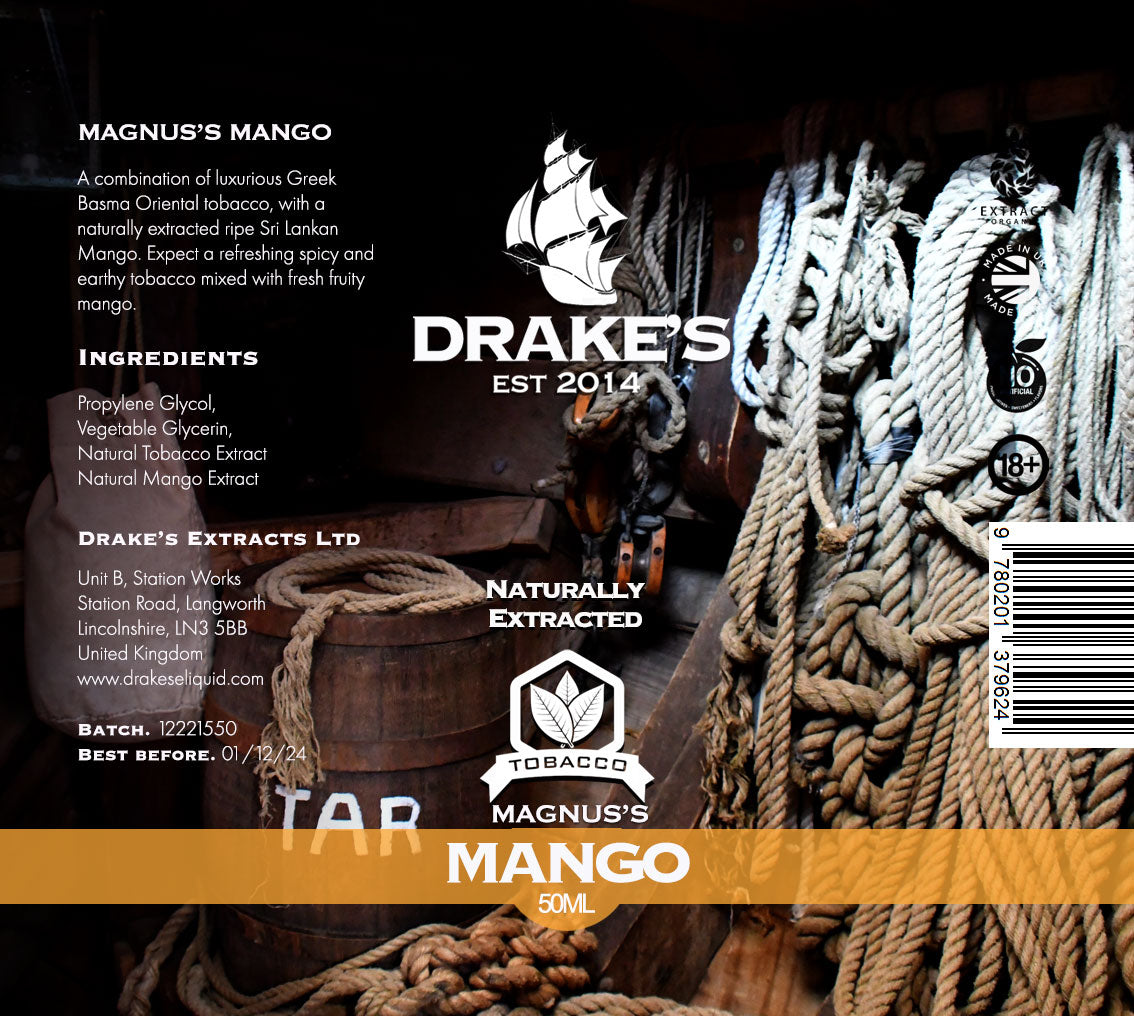 Magnus’s Mango Tobacco 50ml E liquid by Drake's